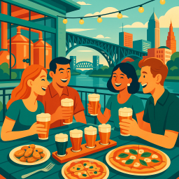 The service, the beer (try the Lake Erie Sunset) and the food is amazing. We shared the Sauerkraut Balls and Mellow Mushroom pizza. All the food coming out of the kitchen looked really good. The restaurant overlooks Lake Erie in the Flats area.