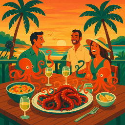 * ¡Peter ahora puede disfrutar la cena con sus amigos en The Bold Octopus Almancil!